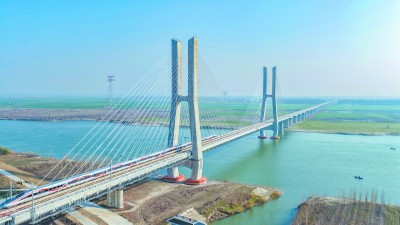 2025年12月26日,由中国铁建总体勘察设计并参与施工的沪渝蓉高铁武汉至宜昌段建成通车。该段正线全长314公里,设计时速350公里,全线新建桥梁88座、隧道25座,共设8座车站。通车后,武汉至宜昌间的旅行时间将从之前的约2小时缩短至1小时左右,钟祥、京山、当阳等多个城市正式迈入高铁时代,对服务长江经济带高质量发展、助力湖北建成中部崛起重要战略支点具有重要意义。图为首发列车通过钟祥汉江特大桥。沈正华 摄