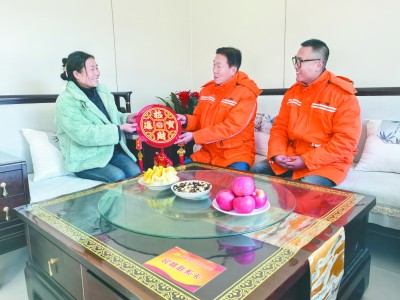 新年伊始,万象更新。2026年元旦期间,中铁二十一局榆中县山洪灾害房屋受损农户集中安置房及基础设施配套工程项目的党员干部专程走访慰问已搬入新居的受灾群众,为他们送去诚挚的节日问候与新年祝“福”。走访过程中,党员干部与群众亲切交谈,拉家常、问冷暖,详细询问他们在新家的生活适应情况,供暖、用水、用电等基础设施是否运行顺畅,还有哪些亟待解决的实际困难,并祝愿大家新年新居新气象,往后的日子会越过越红火。图为党员干部向受灾群众送“福”字。