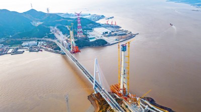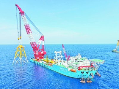 “铁建起重5000”进行导管架吊装。 陈耀金 摄 |
