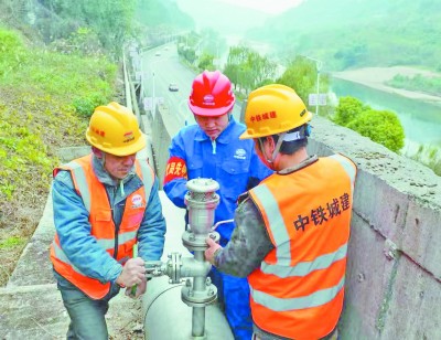 中铁城建茅台酒“十四五”项目部坚持党建与生产深度融合,依托“创岗建区”活动,充分发挥党员先锋岗和驻队党代表作用,凝聚班组力量,赴赤水河沿岸开展茅台扩建项目给水管道专项检修。本次检修点位分散、地势险峻,作业点需攀爬近30米高坎,施工难度大。驻队党代表扎根一线、靠前指挥,项目部通过划定党员责任区、压实先锋岗职责,引导党员亮身份、作表率,切实将党建引领优势转化为工程建设实效,筑牢项目供水安全防线,为项目稳步推进提供坚强保障。刘 庸 摄