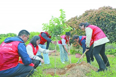 三月岭南,春意盎然。今年植树节,在广州市黄埔区禾叉隆水库旁,中铁二十五局电务公司联合广州市黄埔区青年志愿者协会及属地相关单位,共同开展“绿美黄埔·青年先行”志愿植树活动。挥锹铲土、培土围堰、提水浇灌……100余名青年志愿者分工合作,共同种下柠檬、芒果等70余株树苗,以实际行动践行绿色发展理念,为推进生态文明建设积极贡献铁建“志汇”。图为植树活动现场。吴培豪 摄